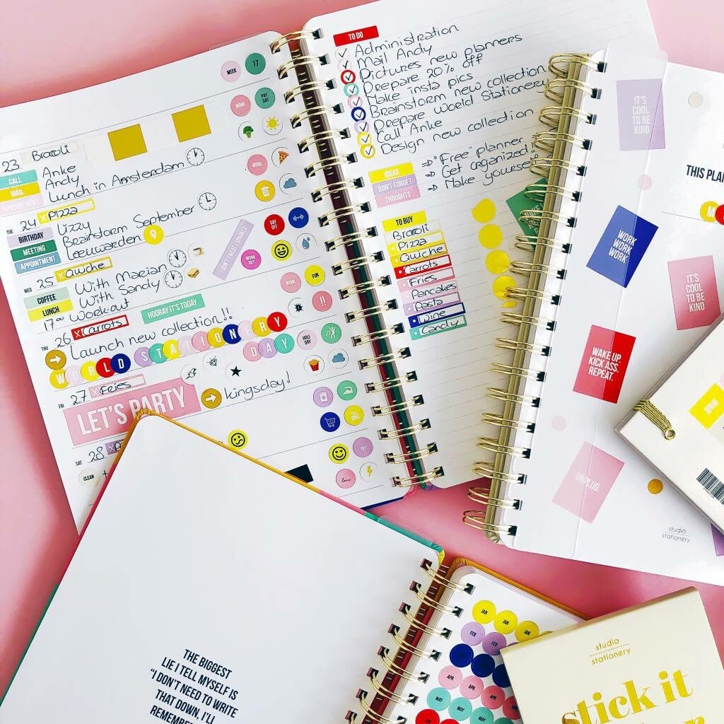 We houden van plannen, we houden van stickers en we houden van mooie notitieboeken. Dus wanneer alles samenkomt in één mooi product, ontstaat er magie! Met veel ruimte om te plannen, veel ruimte om notities te maken en heel veel stickers om plannen nog leuker te maken! Dit boek heeft een plannerpagina aan de ene kant en veel ruimte voor je taken en memo's aan de andere kant. Je kunt op elk moment van het jaar beginnen, want de planner is naar wens invulbaar en er zitten 3 pagina's vol planner stickers speciaal voor jou bij! Vind alle maanden, weken, weeknummers en nog veel meer stickers en begin meteen met plannen!